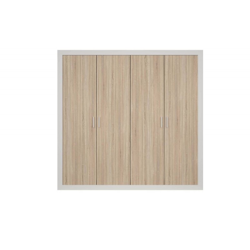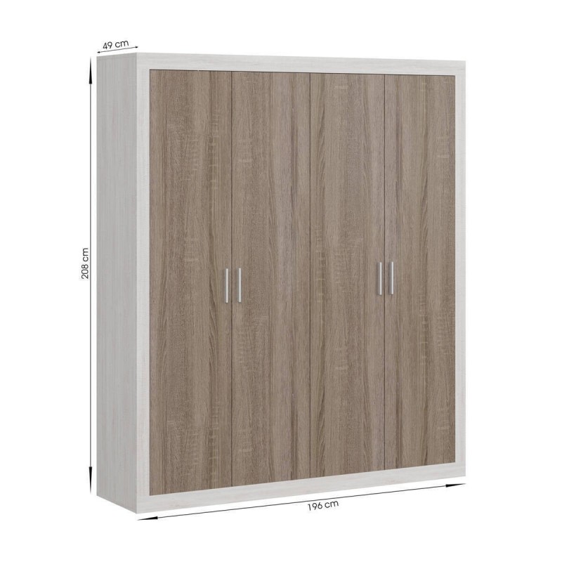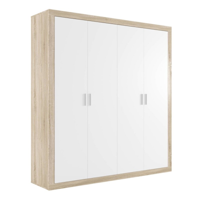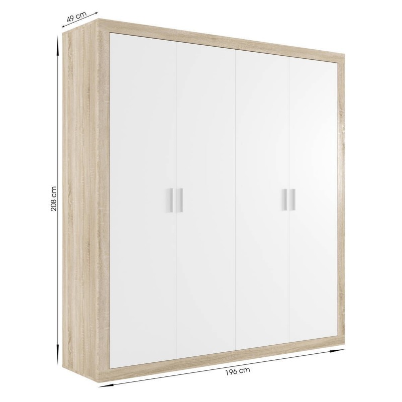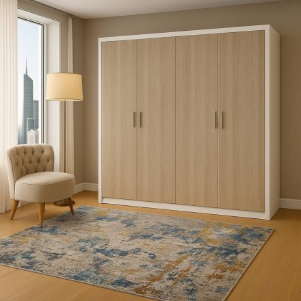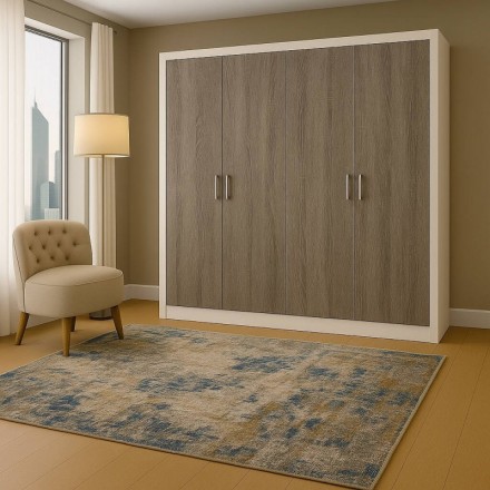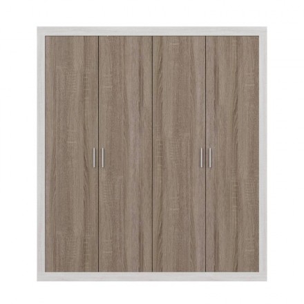 COIMBRA es un armario de cuatro puertas de diseño contemporáneo, elegante y práctico, dividido en dos partes con una barra y un estante cada una, para organizar y tener en perfecto orden toda tu ropa.