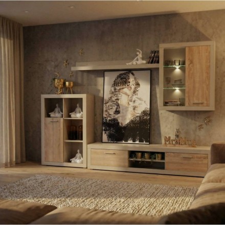 Este mueble de salón modular en color cashmere mate es la elección perfecta para quienes buscan un espacio moderno, luminoso y bien organizado. Su tono beige tostado suave, combinado con detalles en madera clara, aporta calidez y sofisticación al salón, encajando a la perfección en ambientes nórdicos, contemporáneos y minimalistas.