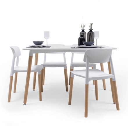 Las 4 sillas CALAS están creadas con un gusto muy especial, con un diseño fresco y práctico con aires nórdicos. Tienen un original asiento de polipropileno de una pieza en color blanco y cuatro patas de madera de haya.