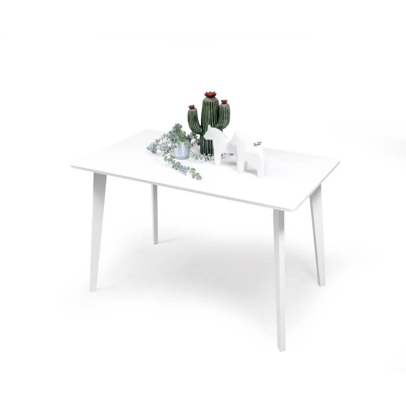 - Patas: Madera maciza pintada en blanco