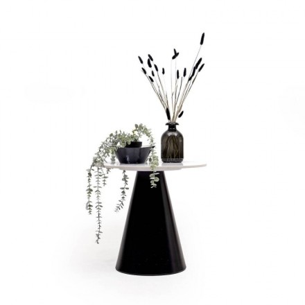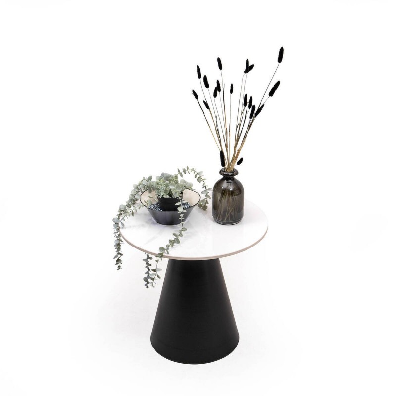 Su tapa porcelánica efecto mármol blanco aporta elegancia, sofisticación y resistencia, mientras que el pie central metálico aporta estabilidad y un estilo moderno de líneas limpias. Perfecta como mesa auxiliar colocada de manera independiente en distintos rincones, o junto a su hermana de 70 cm. Se adaptan a salones minimalistas, modernos o de lujo.