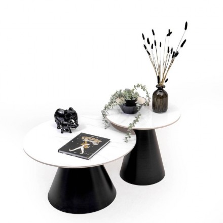Gracias a la combinación del acabado efecto mármol con la estructura metálica, estas mesas transmiten exclusividad y atemporalidad, convirtiéndose en piezas protagonistas de tu salón.