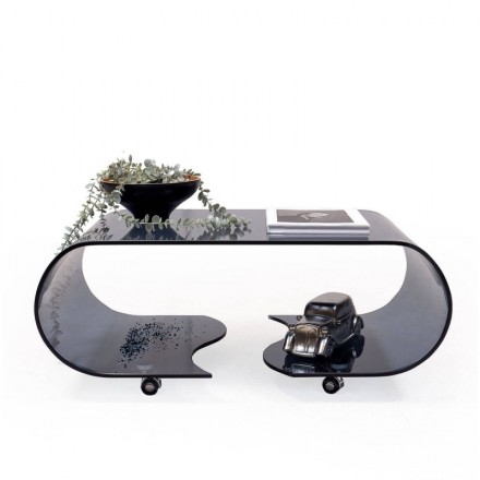 COFFEE es una mesa de centro de cristal curvado transparente de 12 mm de grosor.