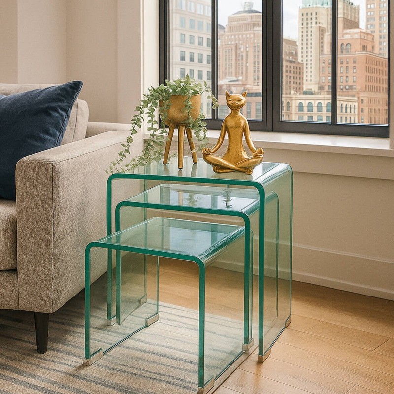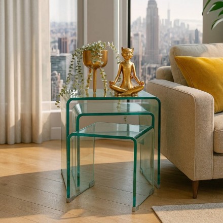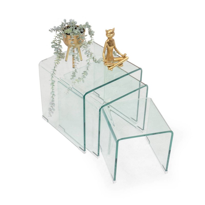 MURANO 3 es un precioso y elegante conjunto de 3 mesitas auxiliares tipo nido de cristal.