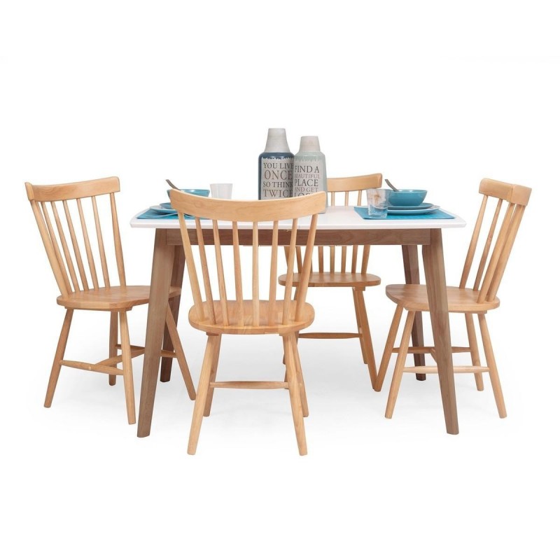 Las 4 sillas VICKY están elaboradas en MDF y madera, y dispones de tres combinaciones de color para elegir: blanco, negro y/o madera natural.