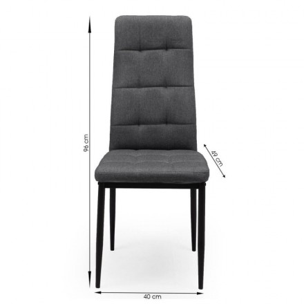 El juego de 6 sillas ZUNI tienen un respaldo y un asiento acolchados con espuma de calidad, para que disfrutes de unas sillas cómodas y bonitas. Están tapizadas en una tela en color gris oscuro con diseño capitoné. Su estructura ligera y moderna es metálica acabada en color negro.