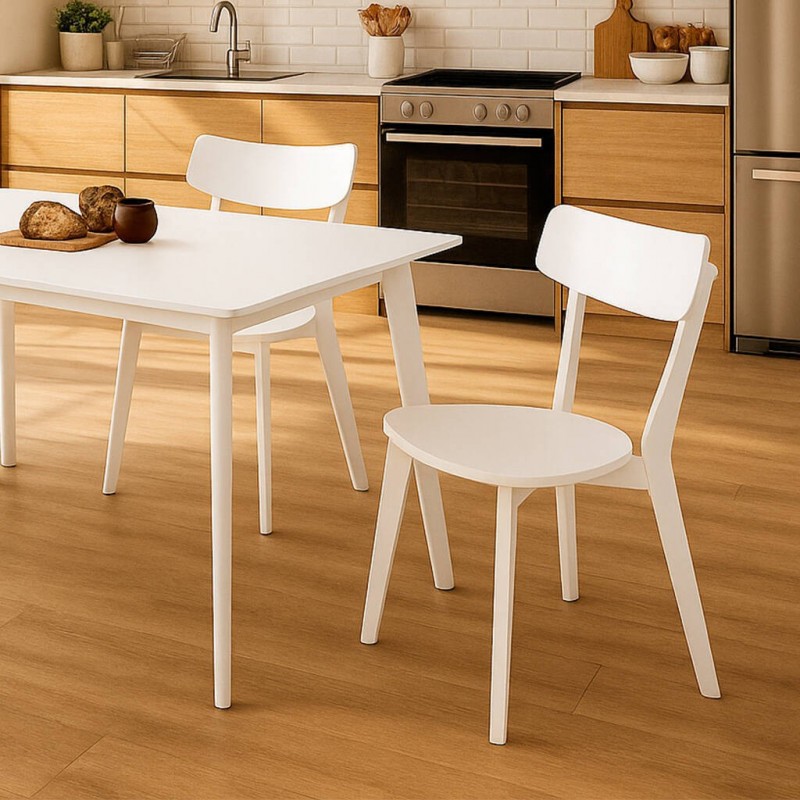 Es cómoda y robusta para uso diario, con una presencia visual ligera que no recarga el espacio. Combina perfecta con mesas de madera clara o superficies blancas.