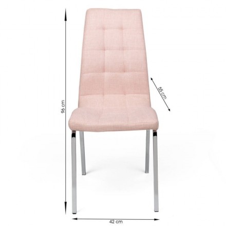 Silla de comedor ALEX tapizada en tela y patas de metal cromadas